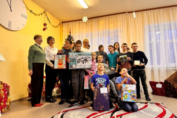 Евгения Чибис и добровольцы Единого волонтерского центра поздравили воспитанников оленегорской КШИ с Новым годом.