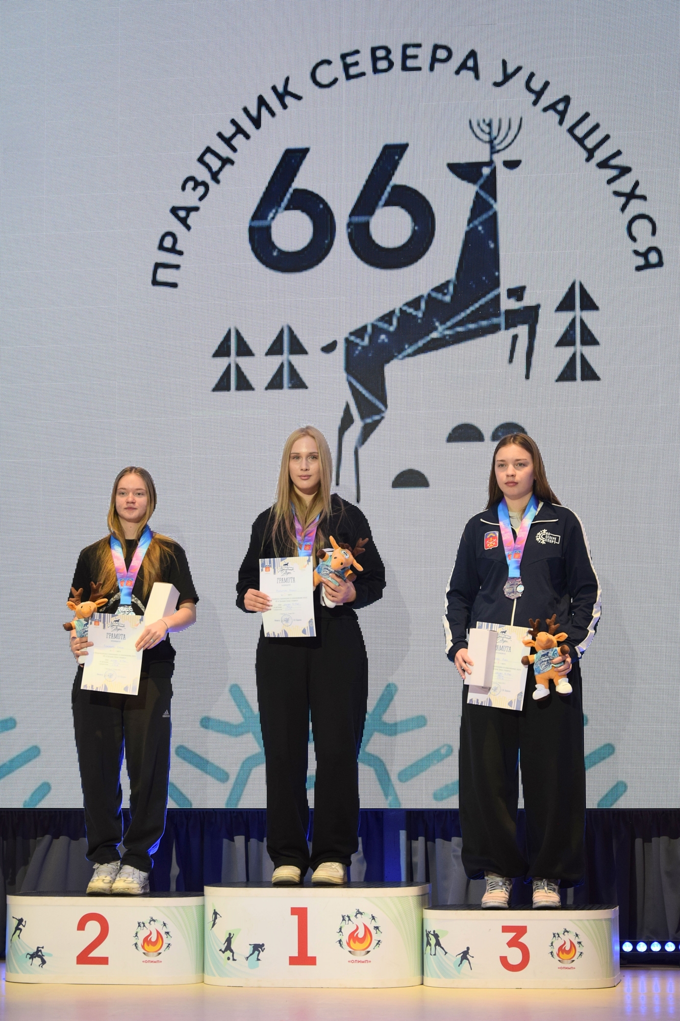 В среду глава Оленегорска Сергей Пашинский вместе с Ксенией Коржовой, Натальей Зыкиной, начальником Отдела по культуре, спорту и делам молодежи Администрации города Евгением Коноваловым и его заместителем Оксаной Чаликовой подвели итоги 66-го Праздника Севера учащихся и наградили сильнейших.