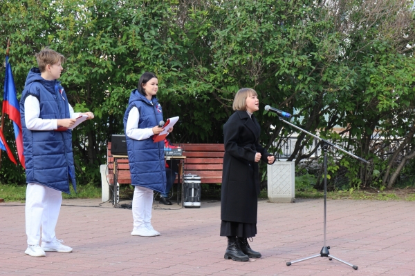 Над собравшимися реял бело-сине-красный триколор, олицетворяющий величие и историю России. Под августовским небом звучала патриотическая музыка, а инициативные оленегорцы делились своим творчеством, исполняя песни и стихи, посвященные Родине и ее символам.
