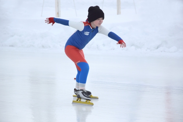 Забеги среди юношей и девушек в возрасте от 9 до 17 лет завершены, но взрослые конькобежцы продолжают в эти выходные состязаться в скорости на ледовых дорожках стадиона спортшколы «Олимп».