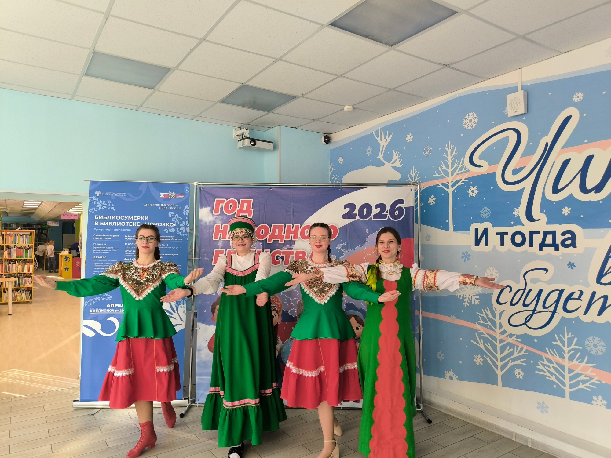 «Библиотека Открытий» погрузила своих посетителей в атмосферу культурного многообразия нашей страны. Гости смогли познакомиться с самобытной саамской культурой, отведать напитки и угощения из разных регионов России, отправиться в захватывающее виртуальное путешествие по родным просторам и насладиться сказочным представлением. Не обошлось и без веселых народных игр, которые объединили участников всех возрастов.